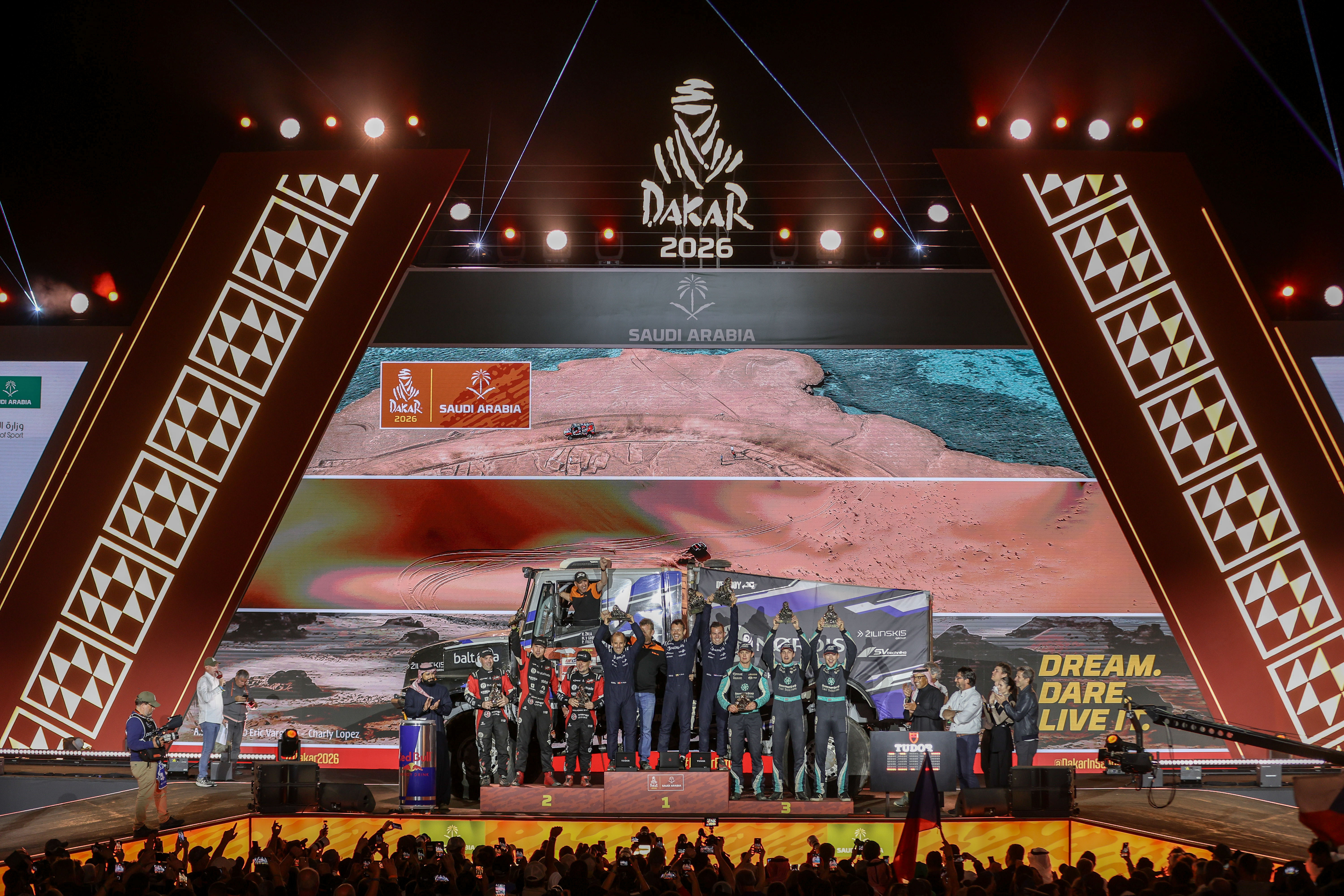 Dakar 2026 menjadi kemuncak. Jentera Red Dragon, yang berwarna merah dan emas, mengharungi perlumbaan dramatik: lima kemenangan peringkat, satu insiden perlanggaran di bukit pasir pada hari kelapan, dan satu jentera terbalik pada peringkat kedua belas — namun pasukan terus berjuang sehingga tamat. Keputusannya ialah mereka menduduki tempat kedua secara keseluruhan, memenangi pingat perak kedua berturut-turut, serta pengesahan kedudukan bertaraf dunia.