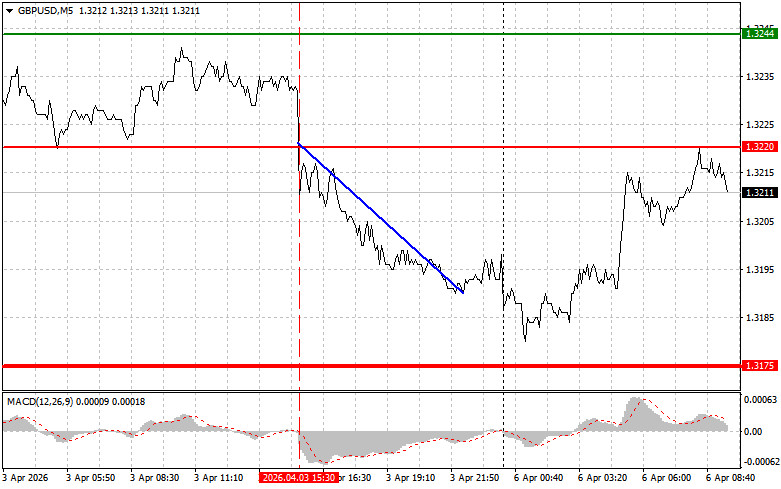 Разбор сделок и советы по торговле британским фунтомТест цены 1.3220 пришелся на момент, индикатор MACD только начинал движение вниз от нулевой отметки, что стало подтверждением правильной точки входа на продажу фунта. В результате пара снизилась более чем на 25 пунктов. Американский доллар вырос в прошлую пятницу после данных о том, что в марте в США возобновился рост числа рабочих мест, а уровень безработицы неожиданно снизился. В отчете было сказано, что число рабочих мест вне сельского хозяйства в прошлом месяце