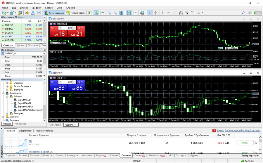 - Вбудований онлайн-магазин готових торговельних радників, індикаторів і скриптів